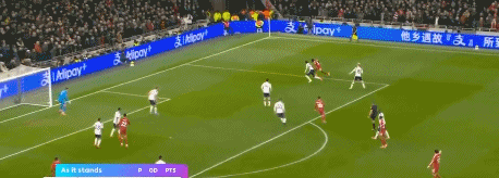 易边再战利物浦立马调整,下半场一开始伊萨克登场,布拉德利被换下,红军摆出双中锋加强攻势。